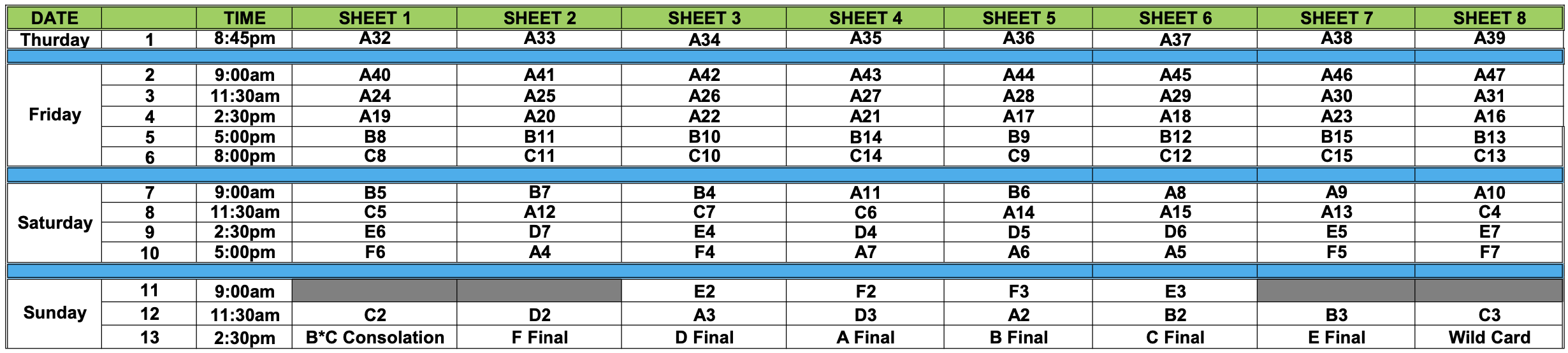 All times are CST